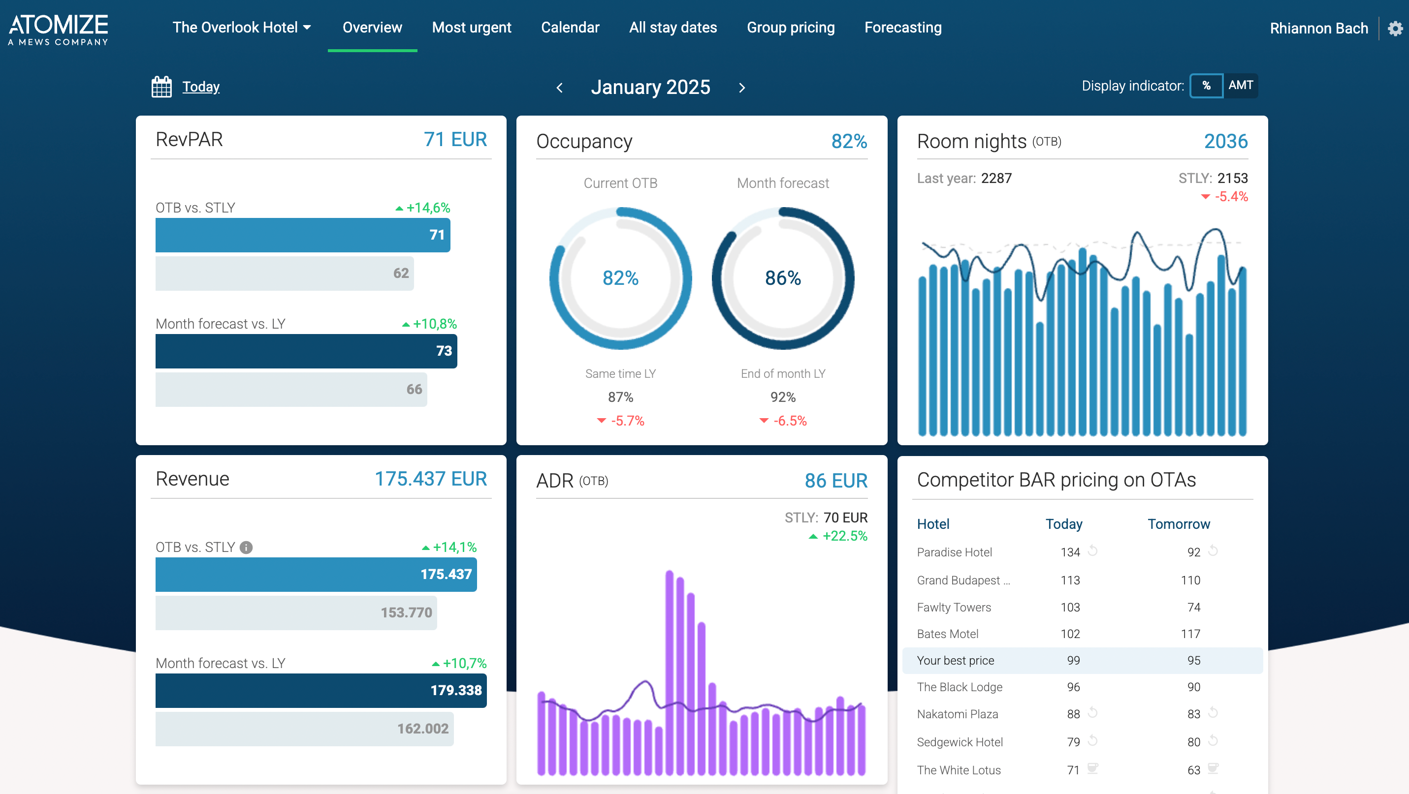 Mews is a generational leader in the new era of hospitality. Powering 12,500+ hospitality brands across more than 85 countries, Mews is designed to streamline operations for modern hoteliers, transform the guest experience and create more profitable businesses. Atomize, now a part of Mews, is a cutting-edge, AI-driven revenue management solution that’s used by over 600 hotels across 50 countries. This combination provides a powerful platform for hoteliers to maximize revenue and simplify daily tasks. Benefits include automated real-time price optimization, connected data for unified reporting, and a reduced workload on staff.